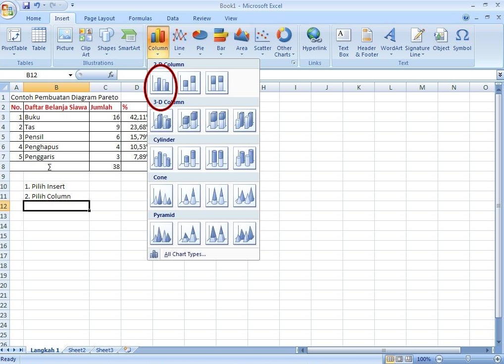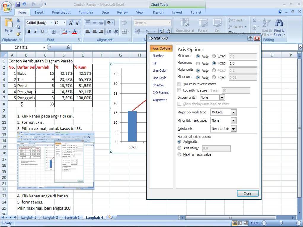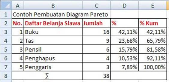 Cara Membuat Diagram Pareto Dengan Excel